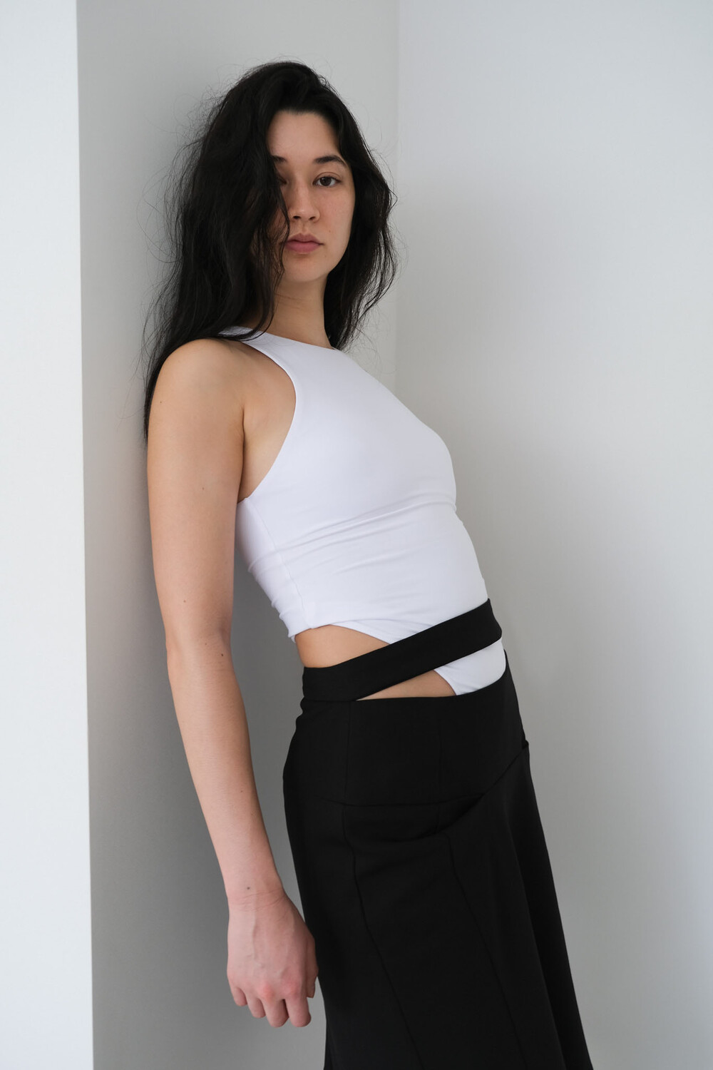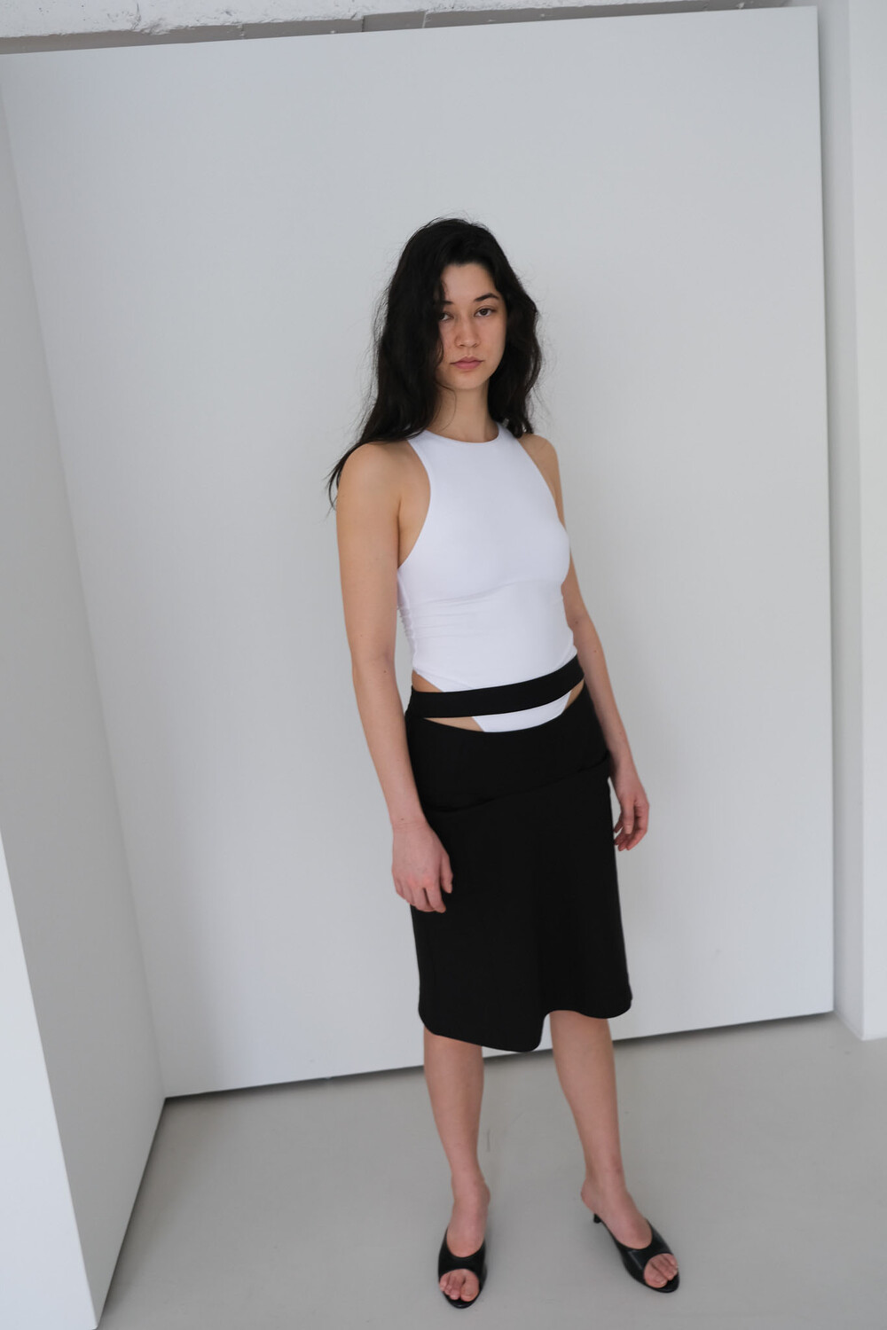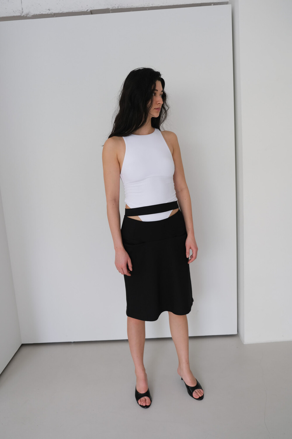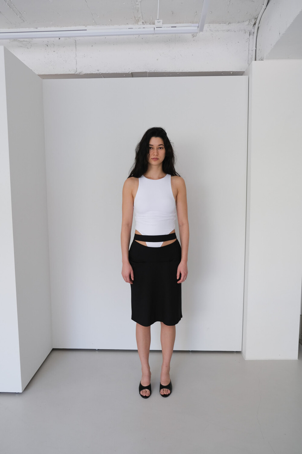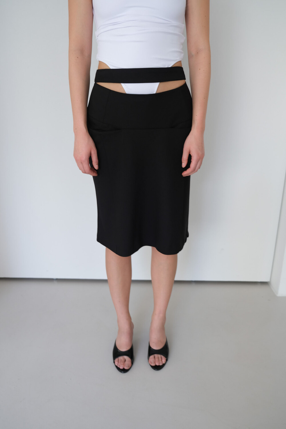 [B-GRADE] 3-way Hole Midi Skirt / Black
