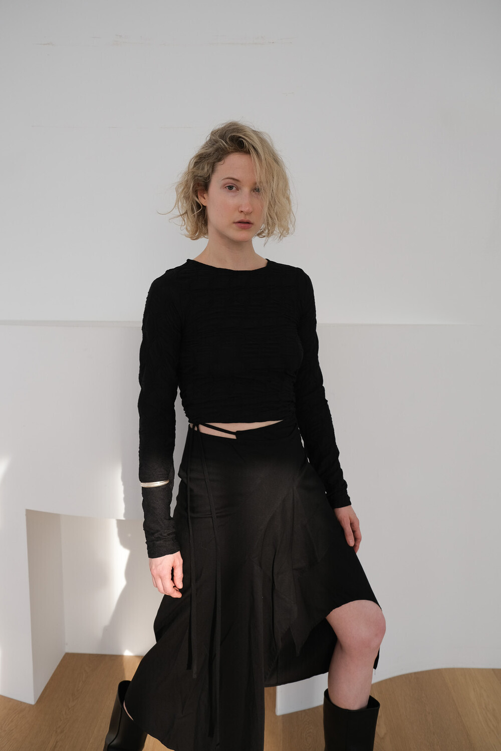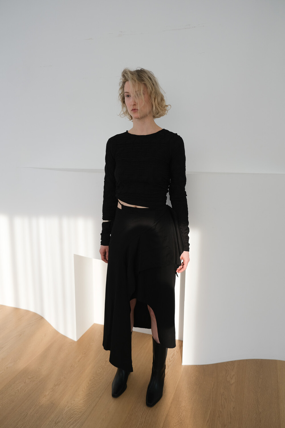 Texture Long Sleeve Top / Black