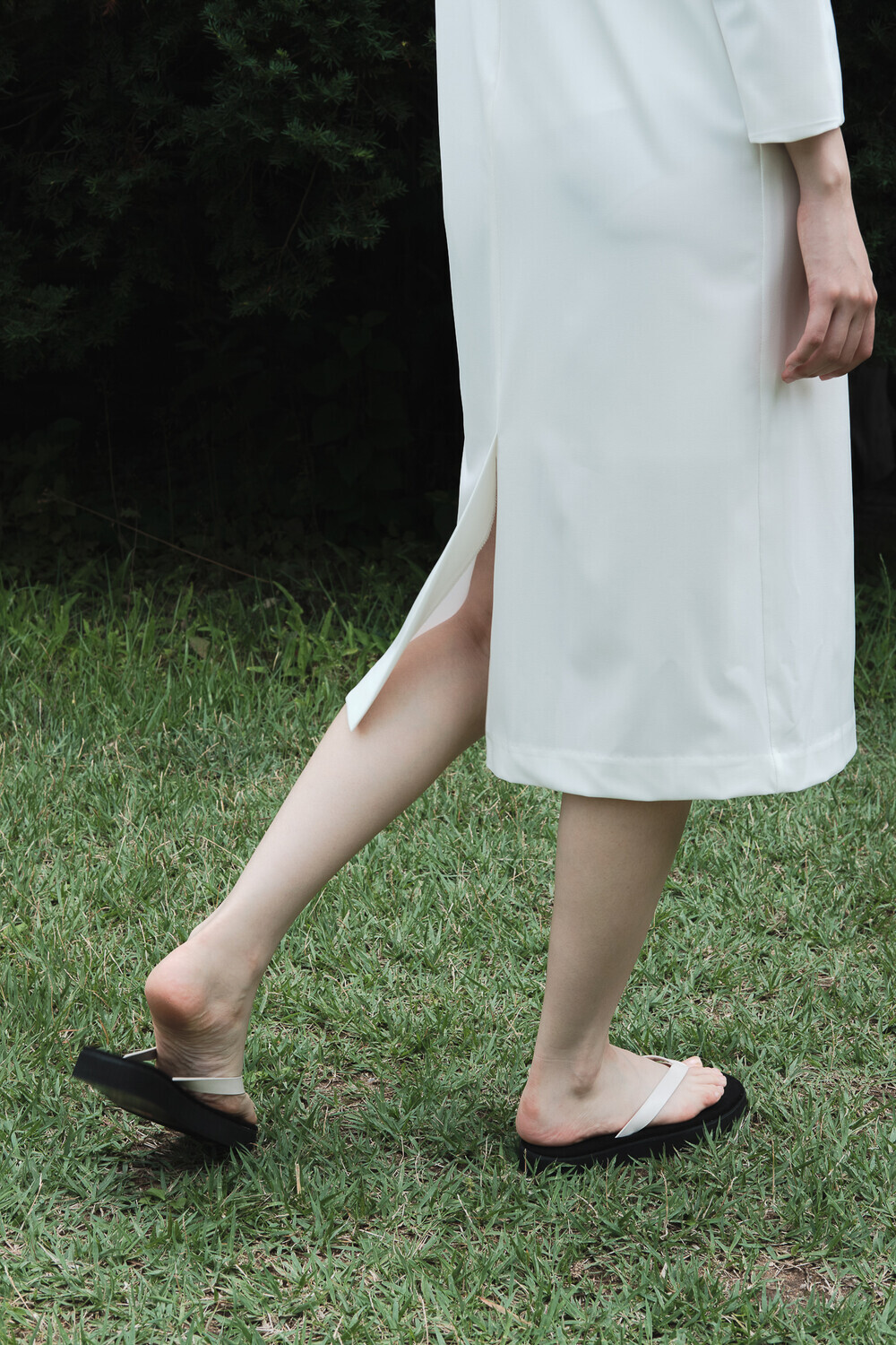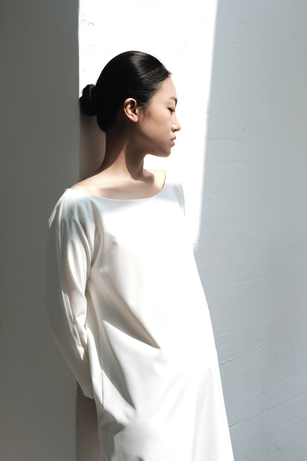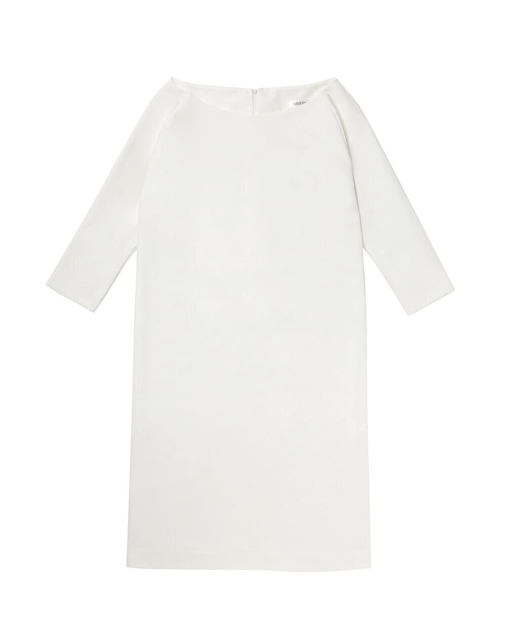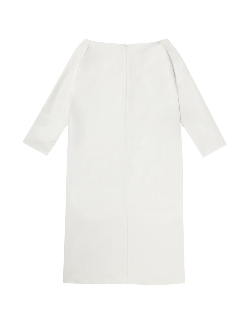 Description 넓게 펼쳐진 보트넥 라인이 돋보이는 드레스입니다. 미니멀하고 스탠다드한 실루엣에 9부 소매와 넥 라인으로 포인트 주어 우아한 분위기가 느껴집니다. 신축성이 느껴지는 드라이한 텍스처의 원단감으로 제작되었으며 안감 처리가 되어있어 비침 없이 착용하실 수 있습니다. 백라인 지퍼와 뒷 트임 디테일로 편안하게 착용되어집니다. 단독 착용 또는 팬츠 등 다양한 제품들과 레이어드해보기 좋습니다.
