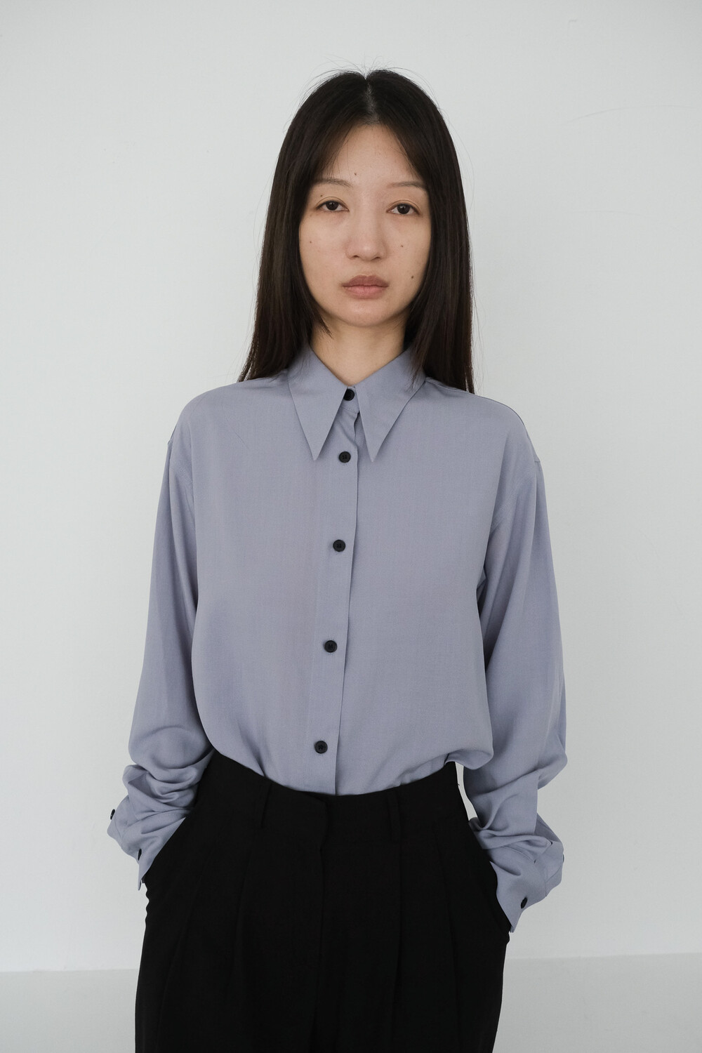 톤 다운된 소라 컬러로 차분하고 단정한 느낌이 돋보이는 셔츠입니다. 전체적으로 심플한 디자인으로 길고 슬림한 카라와 블랙 단추로 포인트를 주었습니다. 길지 않은 기장감으로 착용 시 다리가 길어 보이며 부드러운 터치감으로 착용감이 좋습니다. 포인트 셔츠로 단품 또는 레이어드 아이템으로 활용해 보기 좋습니다.