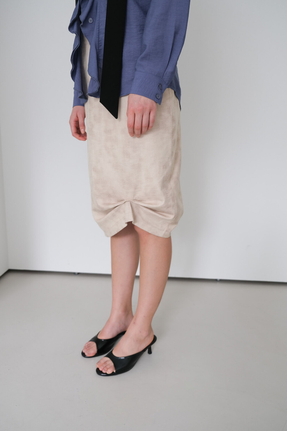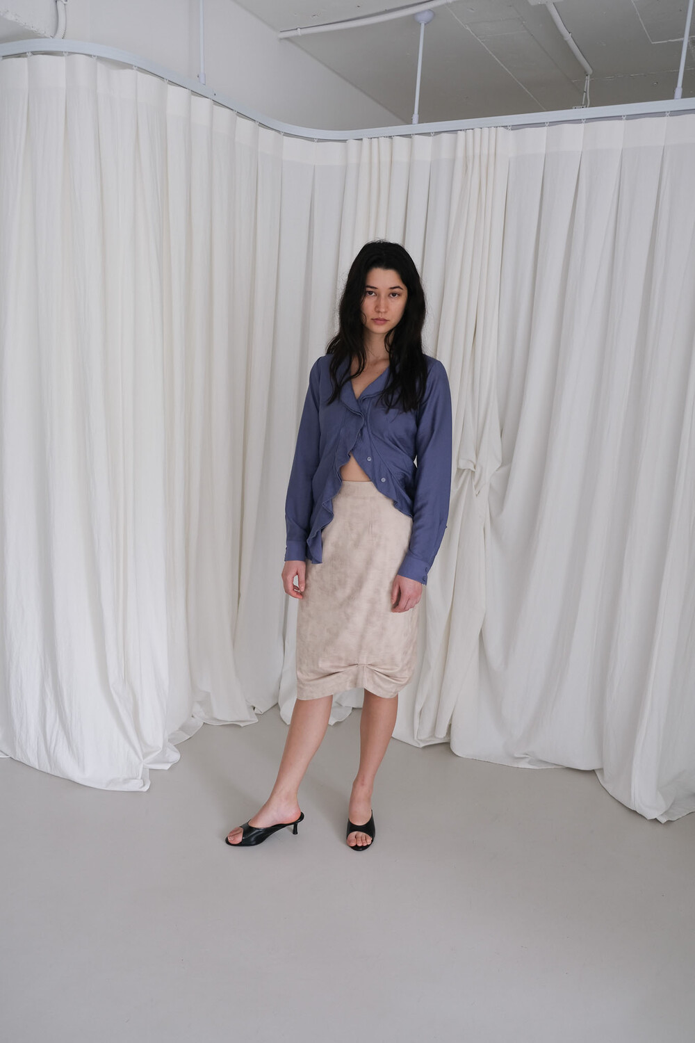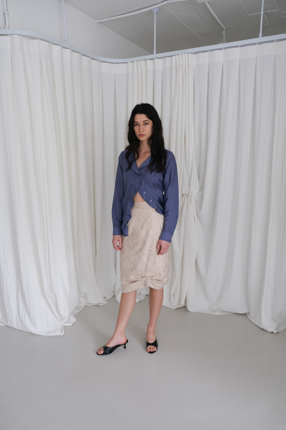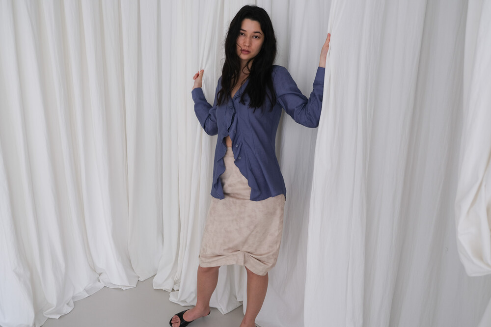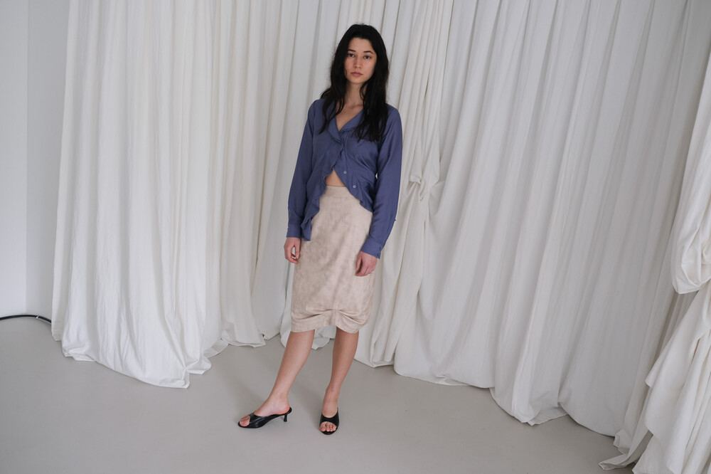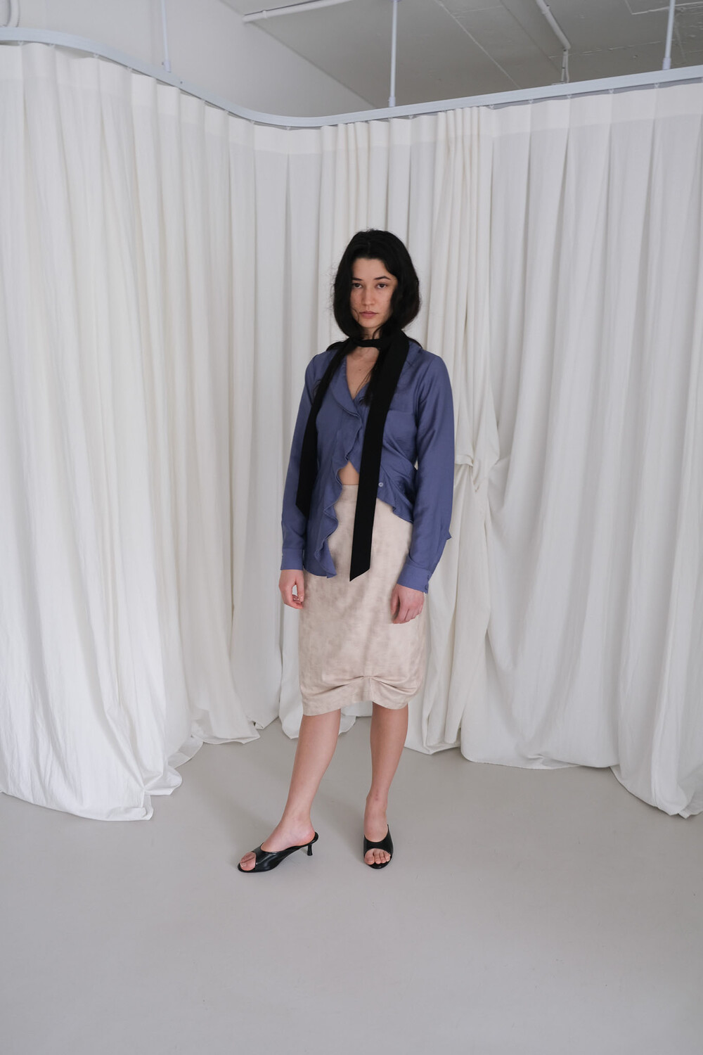 Description 러플 블라우스입니다. 넥 라인과 앞면 버튼 플래킷의 러플 디테일은 블라우스 특유의 우아한 분위기를 자아냅니다. 곡선 형태의 절개 디테일로 허리 라인을 잡아주어 자연스러운 A라인의 아름다운 실루엣이 연출됩니다. 블라우스 외에도 단추를 모두 오픈하여 자켓 느낌으로도 활용해 보실 수 있습니다. 캐주얼한 데님부터 포멀한 슬랙스 스커트까지 다양한 무드로 활용해 보실 수 있습니다. 베이지 블루 블랙 3가지 컬러로 구성되어 있습니다.