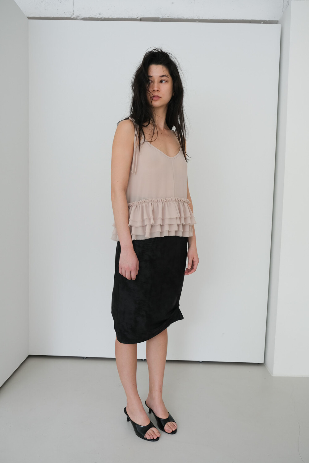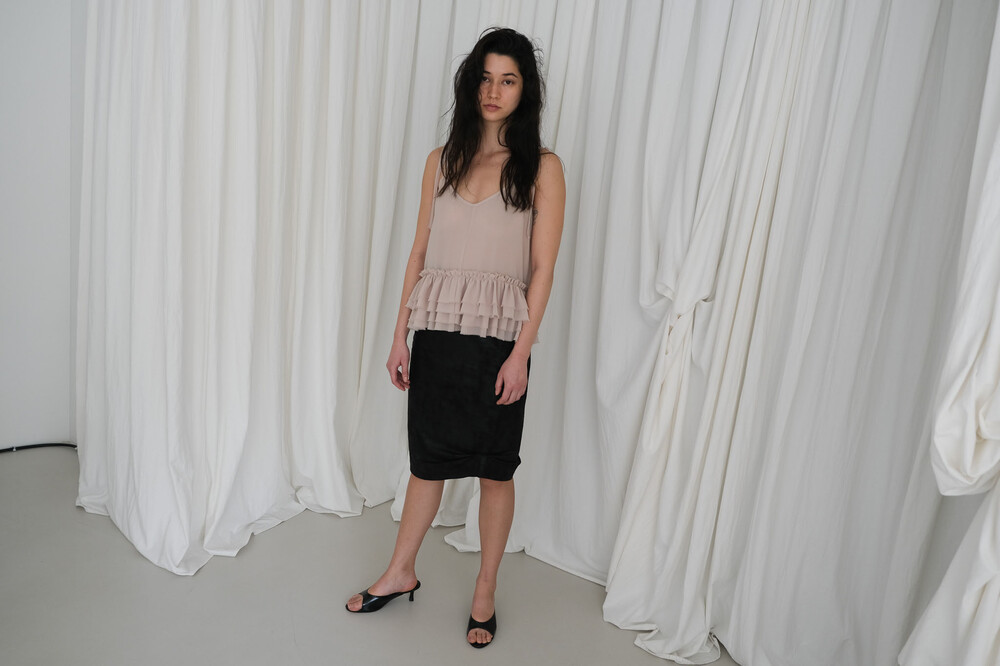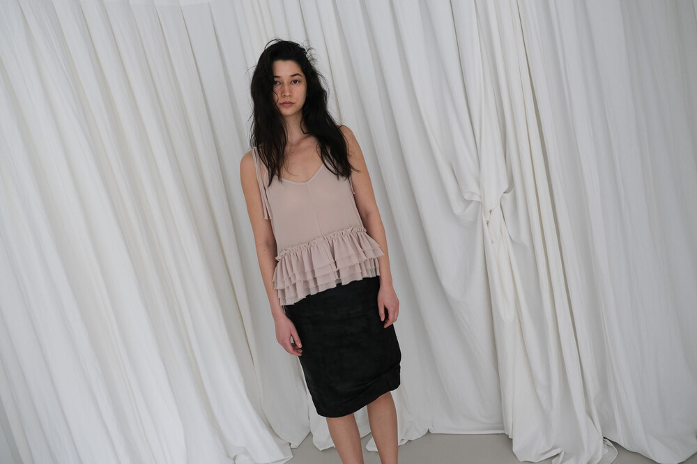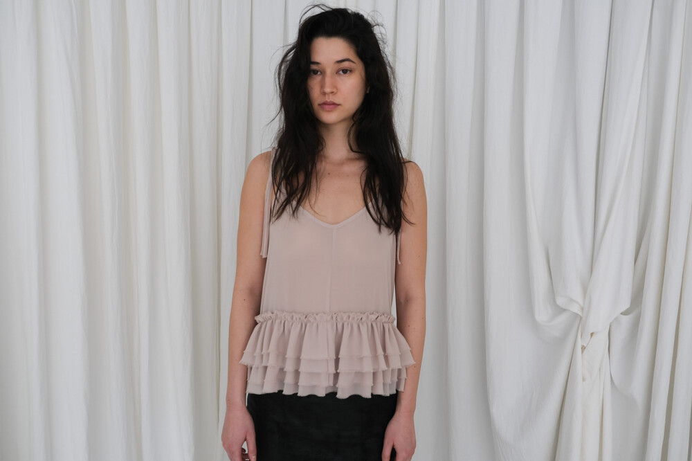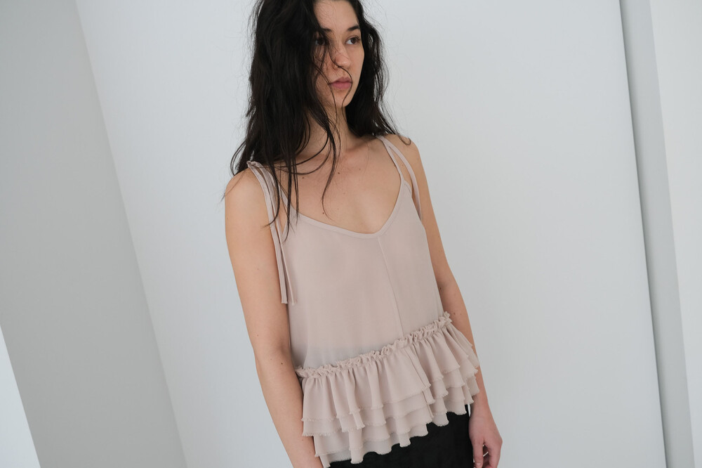 Frill Sleeveless Top / Beige