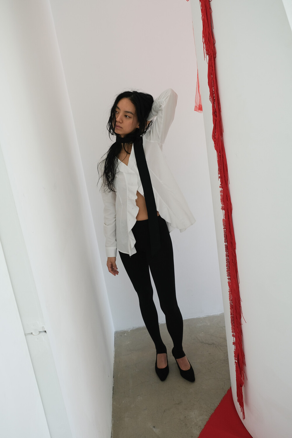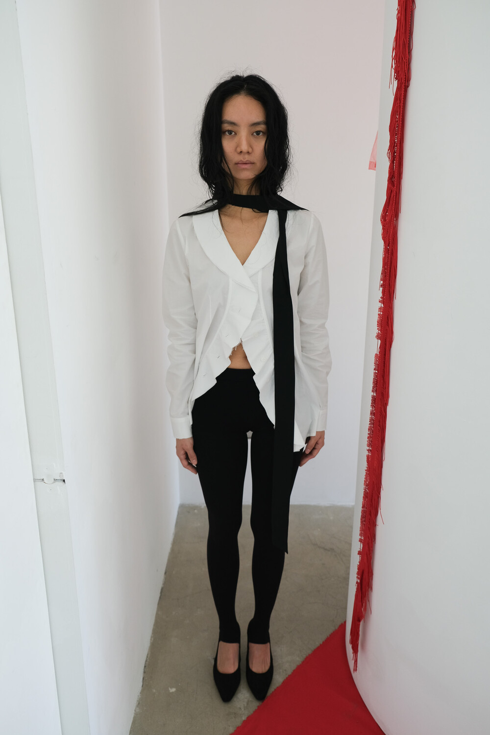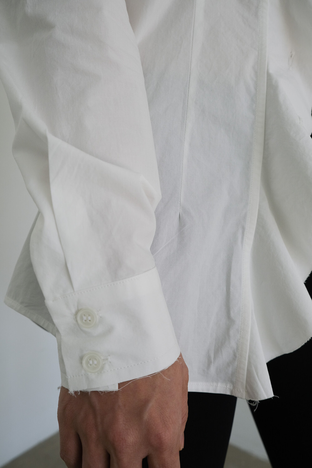 * 날컷팅 기법은 원단 끝단을 일정하지 않게 자연스럽게 컷팅하여, 불규칙하면서도 내추럴한 분위기를 표현하는 봉제 방식입니다.