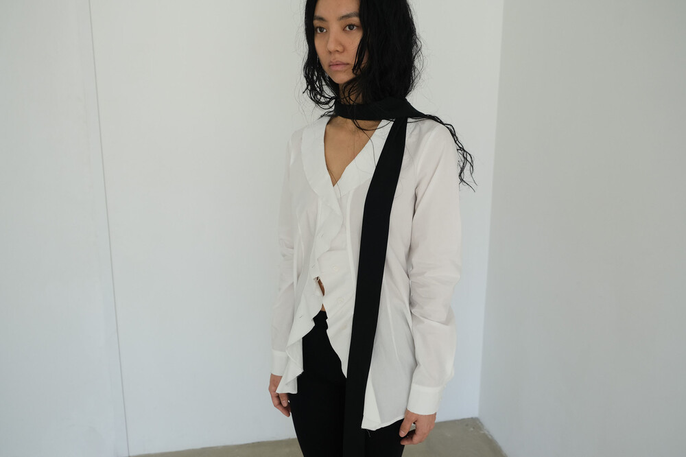 25 Spring 시즌에 출시된 기존 Ruffle Blouse의 소재와 디테일을 변형한 26 Spring 버전 Ruffle Blouse입니다. 기존과 동일한 핏을 유지하되 넥 라인과 러플, 소매 끝을 날컷팅 기법으로 마무리하여 러플 블라우스 특유의 로맨틱한 무드에 러프하고 내추럴한 무드를 더했습니다. 바스락거리는 코튼 소재로 제작되어 유연하고 가벼운 착용감을 선사하며, 계절에 구애받지 않는 시즌리스 아이템으로 활용하실 수 있습니다. 곡선 형태의 절개 디테일이 허리 라인을 자연스럽게 잡아주어 A라인의 아름다운 실루엣을 되며 블라우스로는 물론, 단추를 모두 오픈해 자켓처럼 연출할 수 있어 다양한 스타일링이 가능합니다. 캐주얼한 데님부터 포멀한 슬랙스, 스커트까지 폭넓은 무드로 매치해 보세요.